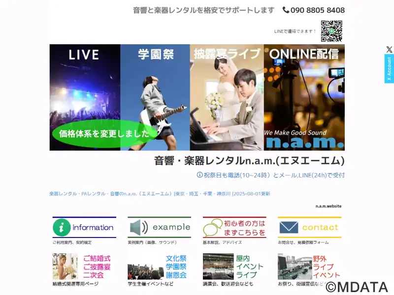 杉並区に拠点を置き、東京、埼玉、神奈川、千葉エリアで楽器レンタルと音響サービスを提供する音響サービス会社。大型ライブイベントから結婚式、学園祭、お祭りなど、幅広い用途に対応。衛生対策を施したサービスが特徴で、ライブ向けの飛沫拡散防止システムや、殺菌済みのマイクカバーなども提供。結婚式や飲食店などのコンパクトなスペースに対応した高性能小型機材も揃え、初心者でも扱えるアドバイスやサポートも行っている。