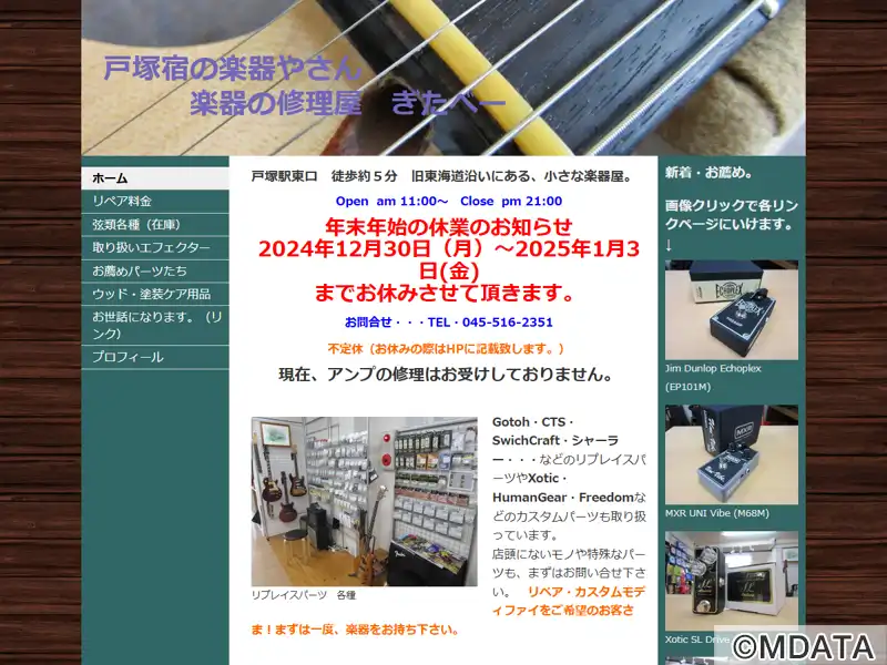 横浜戸塚にある楽器リペアショップ。楽器修理・補修用パーツの販売をはじめ、弦、シールド、ピック、ケアケミカル、エフェクターの販売も行う。Gotoh、CTS、SwichCraft、シャーラーなどのリプレイスパーツのブランド、Xotic、HumanGear、Freedomなどのカスタムパーツも取り扱う。ギターやベースの調子がおかしいと感じている人や、もっとカスタマイズしたいと思っている人のサポートを行う。