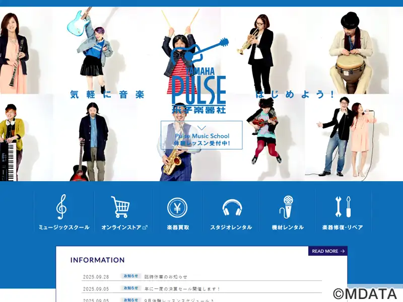 音楽を通じた豊かなライフスタイルを提供する、ヤマハパルス米子楽器社米子店。オンラインストアを中心とした楽器販売、LM楽器の買い取り・下取り、大型楽器(ピアノなど)の出張査定も可能。音楽教室では年齢やレベル、経験、ライフスタイルに合わせた18コースを開講しており、初心者も歓迎している。さらに、バンド練習のためのスタジオレンタル、ピアノ、アンプ、PA機材などのレンタル、楽器の修理サービスも提供している。