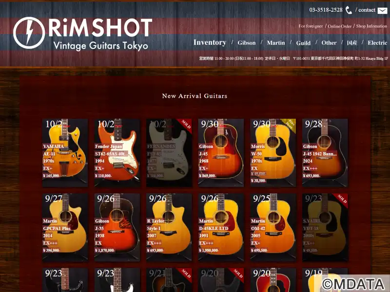 東京神田・神保町に位置する、ヴィンテージ&ユーズドギターを専門に扱うギターショップ。ギブソンやマーティンを中心に、戦前モデルから1960年代の希少機種まで幅広く取り揃える。国産ではMorriやK.YAIRIや、ウクレレやマンドリンもラインナップ。調整やメンテナンスにも力を入れ、楽器本来の魅力を引き出す。店内には弦やピック、カポタストなどのアクセサリ類、ギターケースやメンテナンス用品も豊富に揃える。
