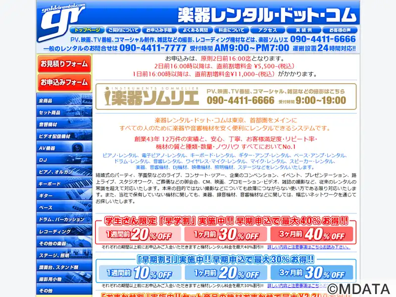 東京京渋谷区を拠点に、首都圏エリアで、楽器や音響機材、照明機材、ステージなどの音響機器のレンタルサービスを提供する。結婚式から学園祭、コンサートツアー、企業イベント、プレゼンテーション、路上ライブ、スタジオワークまで、あらゆるシーンに対応する。創業以来、12万件の業務実績で、高い顧客満足を得ており、業界No.1の品質とコストパフォーマンスで提供する。保有していない機材も幅広いネットワークで用意可能。