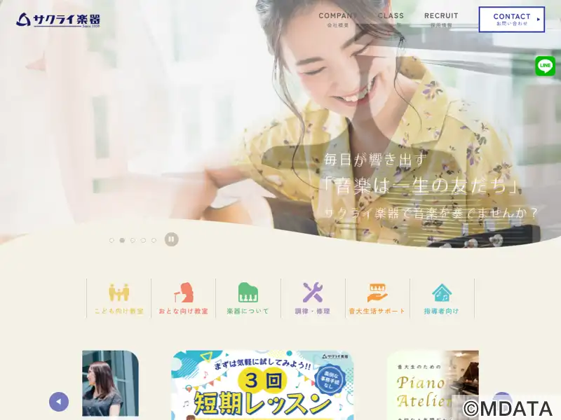 東京都板橋区の成増に本店をもつ、地域密着型の総合音楽ショップ。音楽教室の運営を中心に、ピアノ、鍵盤楽器、弦・管楽器、ギターなどの販売・レンタルに対応。試奏可能なピアノアトリエも併設。レッスンは、ヤマハ音楽教室を中心に、子どもから大人まで30種以上のコースを展開し、初心者から上級者まで幅広く対応。講師は音大出身者や現役演奏家が揃い、個別カリキュラムで指導。調律や修理などの技術サポートも充実している。