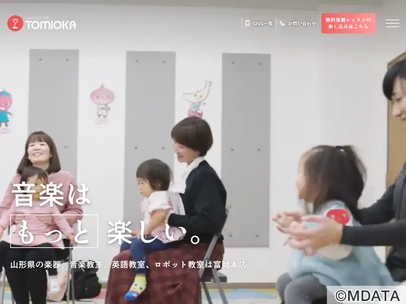 山形市七日町に1897年創業した総合楽器店。楽器、楽譜、音楽ソフトを豊富に揃えた販売、ピアノ調律・楽器修理調整などの定期メンテナンスを行う。また、ピアノ・エレクトーンの個人レッスンや、ティーンズエレキギター、フルート「トミオカオリジナル音楽教室」「ヤマハ音楽教室」などのレッスンを開講。その他にも、楽器のレンタル、グランドピアノ常設練習室の貸出し、最大90席のコンサートサロン「Opaホール」を運営する。