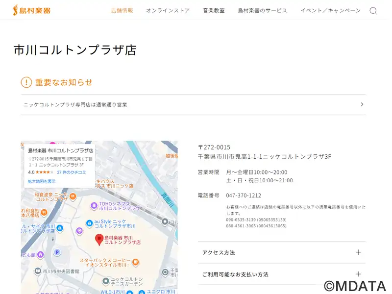 名称 | 島村楽器 市川コルトンプラザ店 |