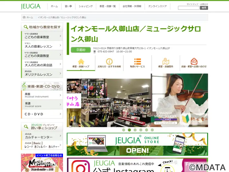 京都のイオンモール久御山2Fに位置する総合楽器店。ギター、ドラム、デジタル楽器、ピアノ、エレクトーン、管・弦楽器など多種多様な楽器を取り揃えている。ジャンル豊富なCD&DVD、音楽書籍、教則本、音楽雑誌などのコーナーや、生の音楽が楽しめるインストアライブスペースも設けている。音楽教室「ミュージックサロン久御山」を併設。ヤマハ音楽教室やJEUGIAオリジナルレッスンなど、多彩なコースを提供している。