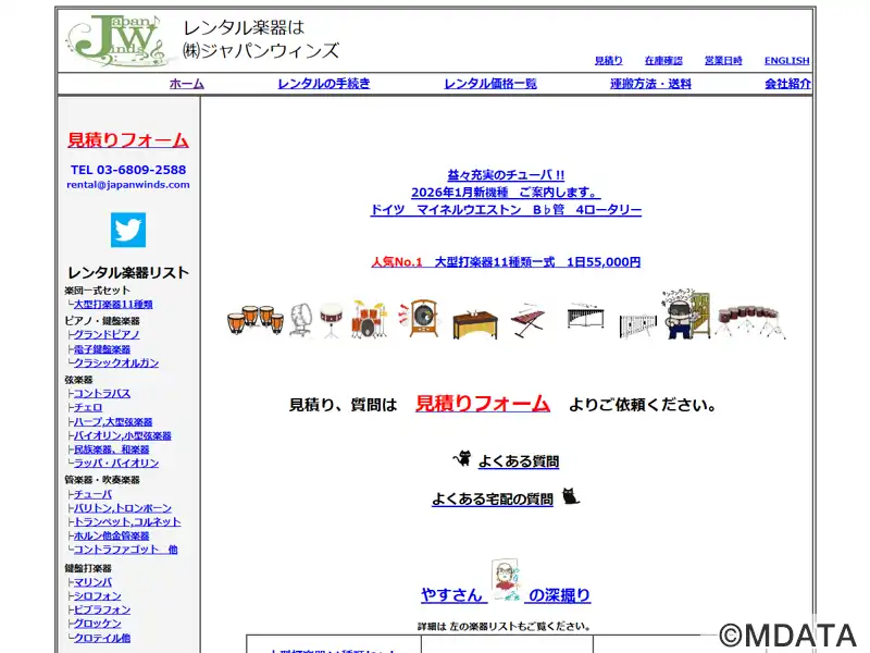 港区浜松町を拠点に、楽器レンタル事業を行う会社。2009年に名古屋で創業し、2013年に東京の現在地に移転した。700点以上の楽器とステージ用品を取り揃えており、大型楽器からピアノ、オルガン、弦楽器、管楽器、パーカッション、民族楽器、和楽器まで幅広く提供している。大型打楽器11種類セットを用意し、学校、市民バンド、オーケストラなど全国の様々な団体に利用されている。祝休日にも対応し、多様なニーズに応える。