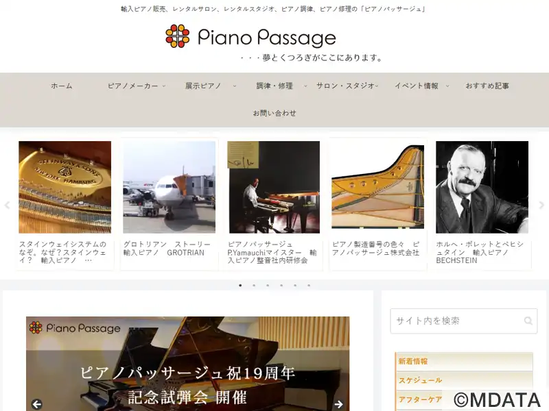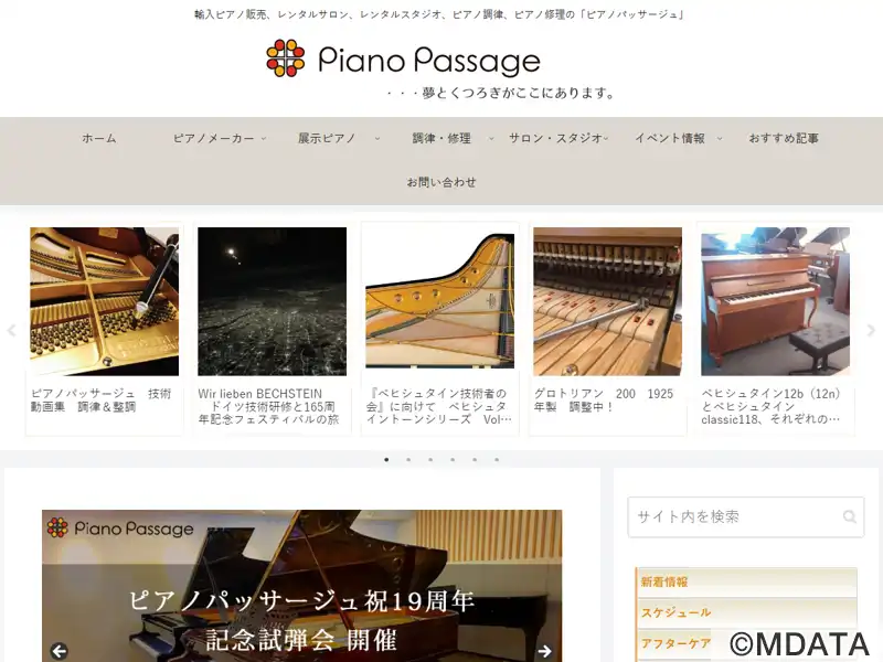 2006年に設立したピアノ専門店。輸入ピアノ販売、サロンホール、レンタルスタジオ、ピアノ調律・修理、ピアノレッスンを提供する。ショールームに併設された「サロン・ド・パッサージュ」はスタインウェイB-211常設、客席70席のピアノサロン。また、ドイツ製ピアノを設置した3つのスタジオがあり、個人練習、リハーサル、グループレッスンに利用できる。調律・修理ではコンサートチューナーの技術と長年の実績がある。