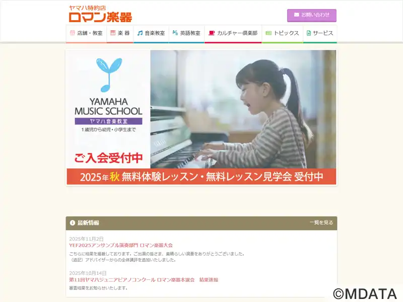 滋賀県に1974年創業した、ロマン楽器株式会社の草津本店。滋賀県最大のヤマハ特約店ピアノ売場として、グランドピアノやアップライトピアノを中心に、クラシック音楽専門の楽器が多数展示・販売されている。2階では、音楽教室「ユニスタイル南草津」を開講。空き時間は練習室として貸し出し。3階には、優れた音響設計のクラシック音楽専用サロン「ロマンホール」があり、著名ピアニストによるコンサートが開催されています。