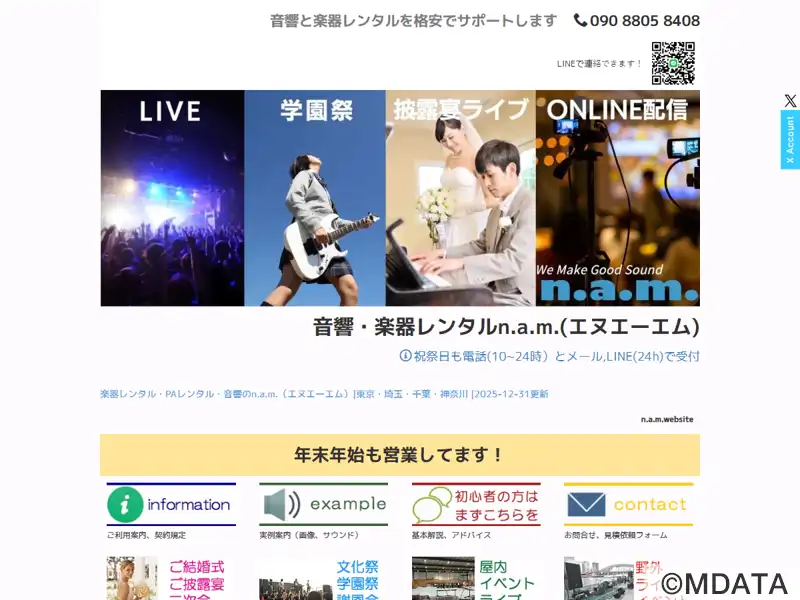 杉並区に拠点を置き、東京、埼玉、神奈川、千葉エリアで楽器レンタルと音響サービスを提供する音響サービス会社。大型ライブイベントから結婚式、学園祭、お祭りなど、幅広い用途に対応。衛生対策を施したサービスが特徴で、ライブ向けの飛沫拡散防止システムや、殺菌済みのマイクカバーなども提供。結婚式や飲食店などのコンパクトなスペースに対応した高性能小型機材も揃え、初心者でも扱えるアドバイスやサポートも行っている。