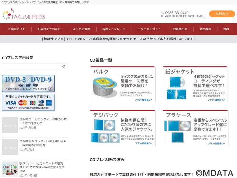 高品質・短納期・低価格を実現。高品質CDプレス、DVDプレス、話題の紙ジャケデジパックなどジャケットの種類も充実。プロモーション用として人気のあるPP加工・塩ビステッカー印刷も低価格で提供。全国各地のライブ・コンサートやコミケ・ボカロなど各種イベント会場への配送サービス。バンドさんやDJ、アーティストの方々のニーズに沿ったノベルティ・販促グッズ制作をサポート。2021年2月、宮崎本社移転&東京デスク開設。