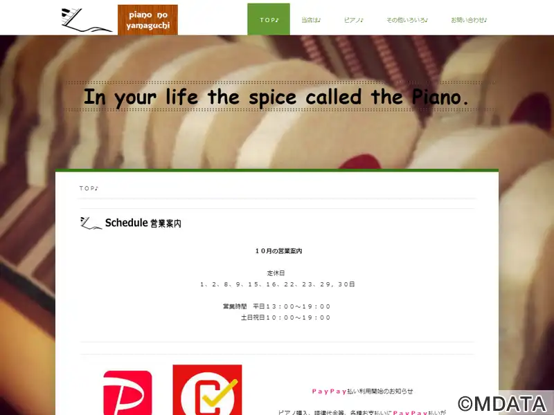 三重県名張市に2014年創業したピアノ専門店。国産ピアノ、輸入ピアノ、古代ピアノ、おしゃれピアノ、中古ピアノ、オリジナルデザインピアノな幅広い種類を展示・販売する。店内では、ピアノの内部や状態を詳細に確認でき、ヨーロッパ製ピアノの響きやタッチを体感することもできる。中古ピアノは、厳格なチェックと調整を経て、長期間の使用に耐えうる品質を保証する。また、調律、クリーニング、修理、移動などにも対応する。