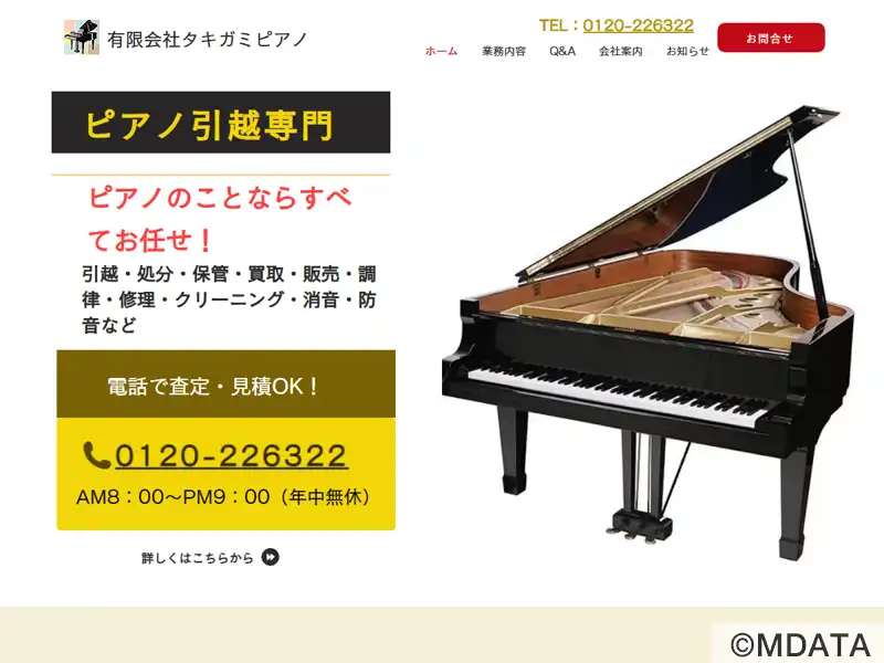 東京都練馬区に本社を置く、ピアノ専門運送会社。ピアノの移動・引越し、調律、修理、オーバーホール、保管、クリーニングからレンタルまで、幅広いサービスを全国対応で提供。特殊技術と独自ノウハウにより、安全かつ効率的に作業を自社で完結し、低価格でのサービスを実現している。また、特別大型のフルコンサートピアノの取り扱いも可能で、中古ピアノの買取・販売、レンタルにも対応。ピアノに関するあらゆるニーズに応える。
