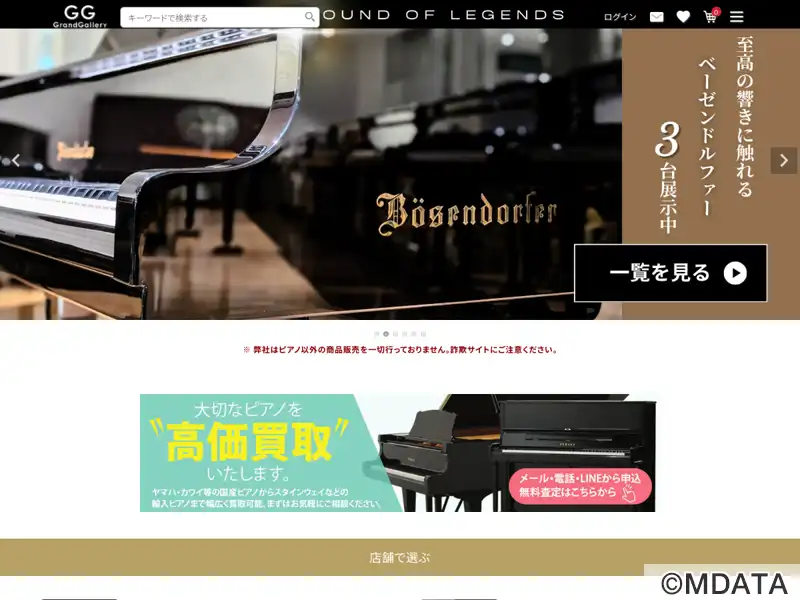 岡崎インターチェンジ至近に2017年8月オープンしたグランドギャラリー本社ショールーム。世界最大規模のピアノ販売モールで、プレミアムピアノやアンティーク、国産・輸入さまざまなブランドのグランドピアノ、アップライトピアノを豊富に展示。全て整調・整音済みで、いつでも試弾が可能。5,000台以上の在庫から要望に合わせたピアノを提供し、専門技術者による修理や買い取りも行う。東京日本橋ショールームも展開。
