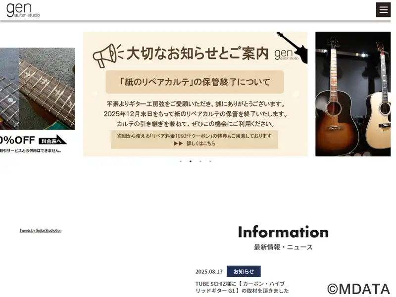 文京区大塚に拠点を置くギター・ベース専門の工房。リペア、カスタム、オーダーメイドを手掛け、ネック調整、フレット交換、ナット調整、弦高・オクターブ調整、ハードウェア交換、配線修理、指板研磨、ネック折れ補強など幅広いサービスを提供。作業は高精度で美しく仕上げる。帝人の新素材“CFaRP”を使用したカーボン・ハイブリッドギター「G1」を取り扱う。遠方からの宅配リペアにも対応し、品質へのこだわりが特徴。