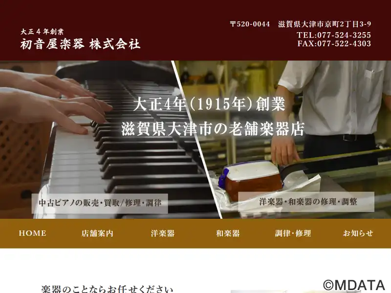 滋賀県大津市にある創業大正4年の歴史ある楽器店。洋楽器はヤマハ特約店として、ピアノやリコーダー、ハーモニカなどの学校用教材や電子ピアノ、中古ピアノ、管楽器全般を取り扱い、和楽器では琴や三味線などを取り扱う。「信用と技術」をモットーに、信頼性と高い技術力で、ピアノの調律や修理、琴糸締めや三味線の皮張り、調弦などのメンテナンスやサービスを提供する。滋賀県を中心に、訪問による引き取りサービスも行っている。