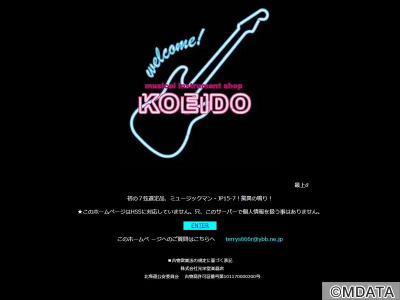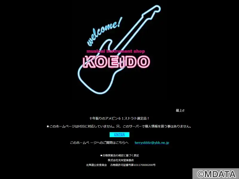札幌と小樽に店舗をもつ老舗楽器店。経験豊富な専門家が、愛情を込めて一本一本厳選した楽器を提供している。入門から中級向けの楽器を中心に、あらゆる演奏者のニーズに応えられる品揃えと、厳選された高品質な楽器を展示、販売している。特にフェンダーUSAについては、極上の在庫を所有している。音質への自信から、価格競争には参加しないポリシーが特徴。購入後2年間の無料調整サービスなど、手厚いサポートも提供している。