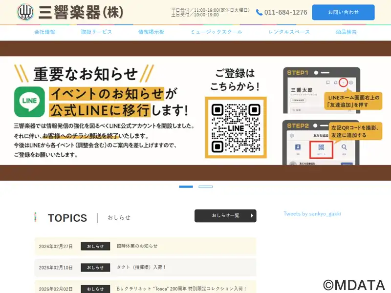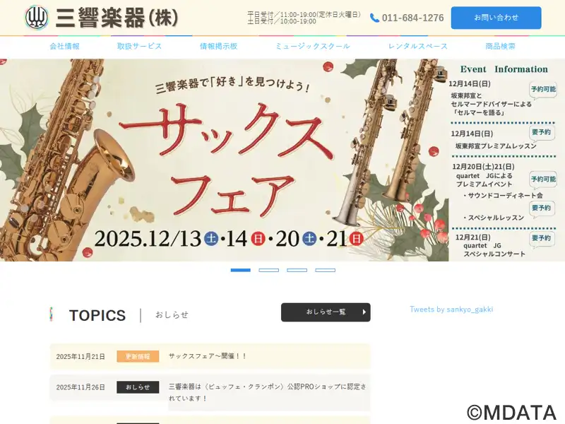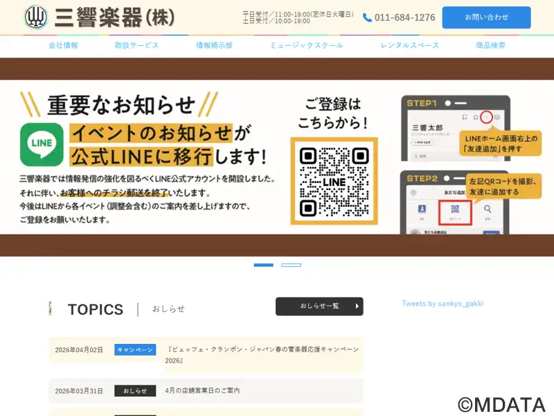 札幌市手稲区にある、1981年創業の楽器専門店。経営理念に、音楽活動の普及、楽器演奏による心の豊かさの創造、学校やサークルへの音楽活動支援を掲げている。吹奏楽楽器と中古楽器の販売を中心に、専門知識を持ったスタッフによる修理・リペアを行い、地元の吹奏楽部やウインドオーケストラの活動を支えている。また、全3室の防音スタジオの貸し出しもあり、楽器試奏、バンド・個人練習や音楽スクールの運営に利用されている。