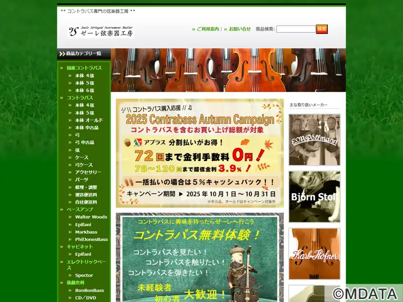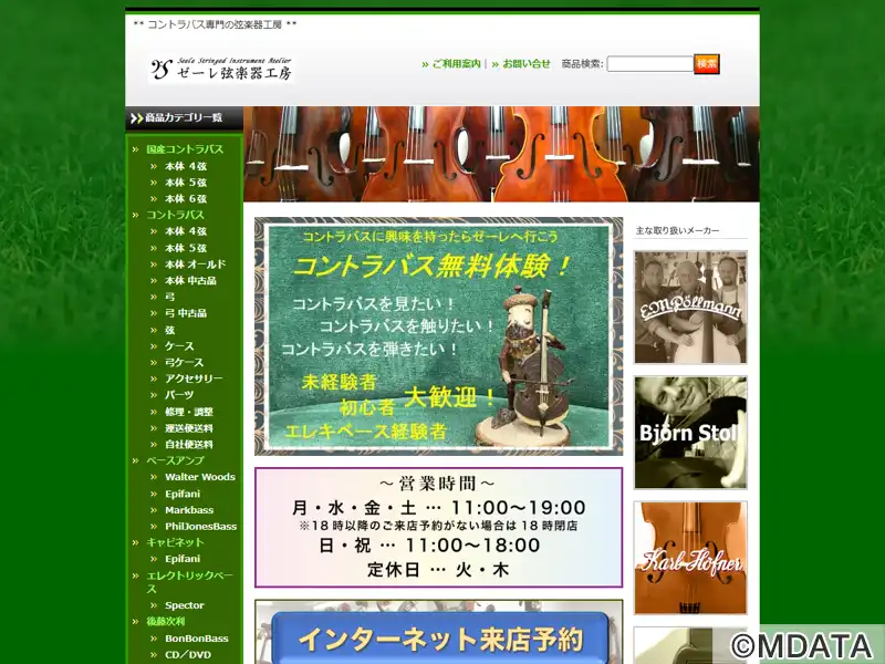 神戸市灘区の岩屋駅から徒歩2分の場所にあるコントラバス(ウッドベース)専門の弦楽器工房。オリエンテ(ヒガシ絃楽器製作所)特約店として国内外の新作からオールド、中古品まで幅広く取り揃え、常時60本以上の在庫を所有する。販売のほか、修理や調整、製作から、購入後のアフターケアまで充実したサービスを提供。専門的な技術と知識を持つスタッフが、初心者から経験者まで、楽器選びやメンテナンスのサポートを提供する。