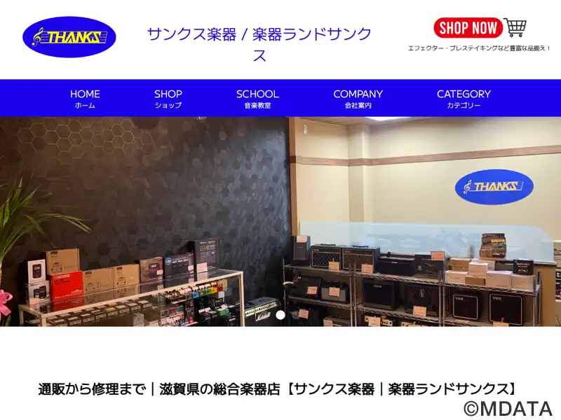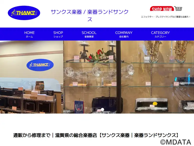 滋賀県甲賀市で1987年創業した楽器店。ギター、ベース、電子ピアノ、管楽器などの販売から、アンプ、エフェクター、弦、楽器小物、楽譜・音楽ソフトまで幅広く取り扱う。特に管楽器については豊富に用意し、リペアマン常勤で質の高いサービスを提供している。店舗でサンクス音楽教室を併設し、ピアノ、ドラム、ギター、ベース、管楽器の個人レッスンを基本に、リトミックを取り入れたレッスンやグループレッスンも開講している。