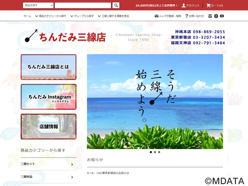1996年に創業、那覇牧志にある沖縄三線の専門店。音が良く、弾きやすい(扱いやすい)三線を製造し、仕上げた三線はすべて一棹一棹チェック。一点ものの三線から、ギター風ペグ三線、内蔵マイクと「むどぅらんカラクイ」を取り付けたライブ仕様のハイグレード三線など新しい三線スタイルも提案。修理、調整、皮の張替え。無料の三線体験コーナーあり。国際通りから数十歩入った那覇本店、東京新宿店、福岡天神店を展開。