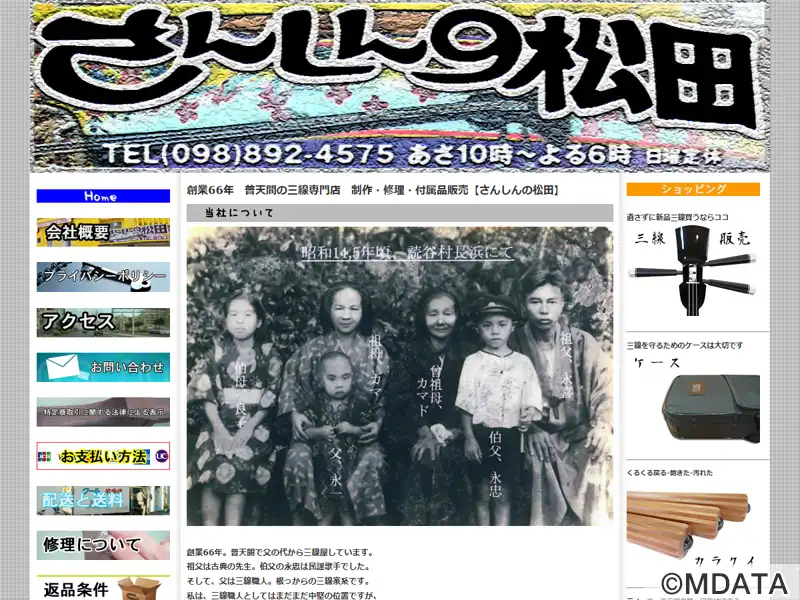 沖縄県宜野湾市の普天間神宮の向かいにある、1961年創業の三線専門店。三線の製作、修理、および付属品の販売を行っている。三線職人の松田永店主は、代々三線に携わる家系出身で、伝統文化を守りつつ独創的な三線づくりに取り組んでいる。店では、本革張りを中心とした修理や、カラクイ、ティーガ、ケースなどの小物、そして工工四(楽譜)を店舗および通信販売で提供している。また、三線の魅力を広める活動も行っている。