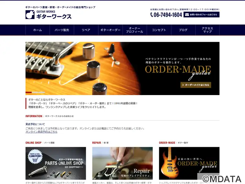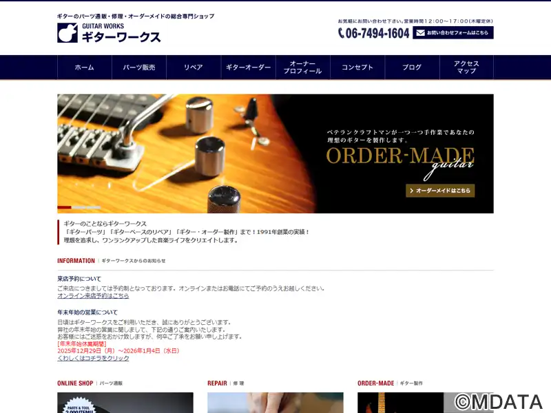 大阪摂津市に1991年に創業したギター専門店。オーダーメイドギターの製作、ギターの修理・リペア、ギターパーツの販売を行う。一台一台手作業で、世界に一つだけの特別なカスタムギターを製作する。専門知識を持つスタッフが、レアなパーツの入手から修理まで、高品質なサービスを提供。また、ギター製作用の材料、パーツ、工具、書籍の販売も行い、自作派もサポートする。プレイヤー目線で高品質な商品とサービスを提供している。