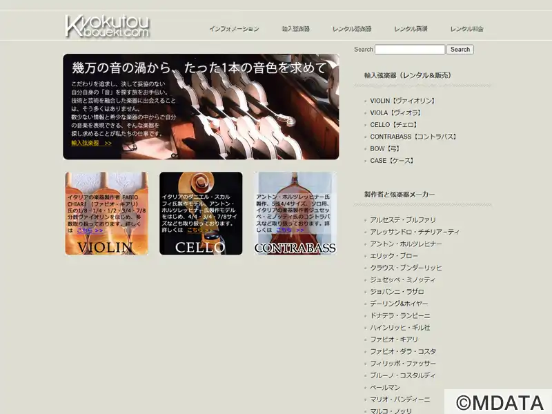 札幌市新発寒にある楽器商社で、主にヨーロッパから輸入した弦楽器、弓、ケース、弦などを販売、レンタル、製作・修理を行っている。弦楽器はイタリア製とドイツ製、ケースはドイツ製のとフランス製を扱い、分数ヴァイオリン、イタリアオールド楽器やドイツマイスター楽器のヴァイオリン、ヴィオラ、チェロ、コントラバスも取り扱っている。コンサート、発表会、音大受験、コンクールのための楽器レンタルも提供する。