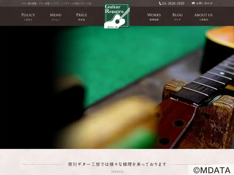 東京足立区の北綾瀬駅から徒歩8分に位置するアコースティックギター専門工房。アコースティックギターの修理を中心に、エレキギターやウクレレのネック折れやフレット交換など、幅広いリペアに対応。湿度管理を徹底した木張りの工房内には、修理中のギターが並び、楽器と向き合う姿勢がにじむ空間で、すべての工程を手作業で行う。また、オリジナルギターの製作も手がけており、演奏者の要望に応じた仕様、設計の楽器を提供する。