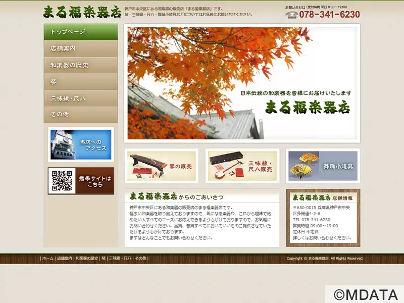 神戸市中央区のJR神戸駅から徒歩5分の場所にある和楽器の専門店。琴、三味線、尺八、太鼓、舞踊小道具など、幅広く和楽器を販売している。品質と音質にこだわり、修理・メンテナンスも行っています。趣味で和楽器を始めたい初心者から上級者、プロフェッショナルまでを対象に、楽器の紹介、楽器選びのアドバイス、メンテナンスの方法など、あらゆる相談に対応している。神戸の地で長年にわたり、和楽器の魅力を伝え続けている。