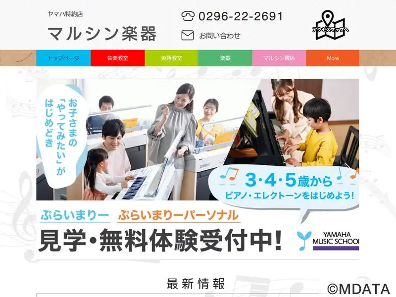 茨城県筑西市にある楽器・音楽・教育の総合拠点。明ヤマハ特約店として、ピアノ、電子ピアノ、管・弦・打楽器、楽譜などを販売し、中古楽器の買取、レンタル、修理、調律も行う。ヤマハ音楽教室では、幼児から大人まで、ピアノ、ギター、フルートなど多様な楽器レッスンを提供。英語教室や「健康と歌」などの大人向けグループレッスンも充実。教科書や文具も取り扱い、学校や学習ニーズに応える。地域の学びと楽しみを支える拠点。