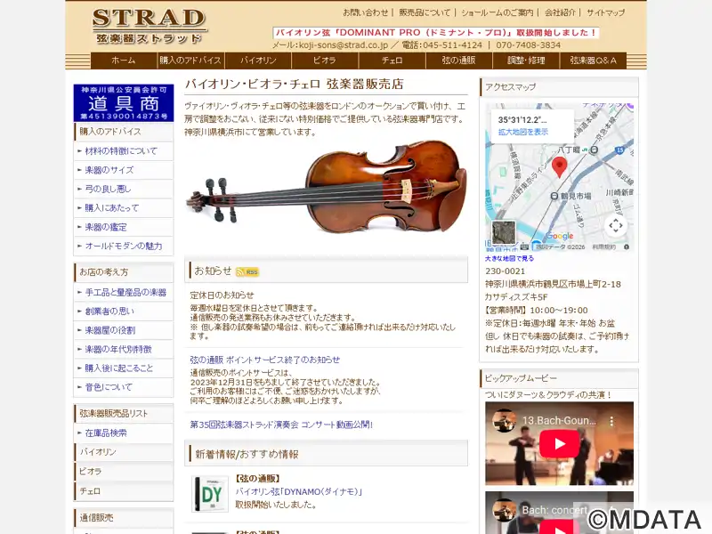 横浜市鶴見区にある、バイオリン、ビオラ、チェロの専門店。ロンドンのオークションで買い付けた、古いイタリア製の楽器を自社工房で調整し、特別価格で提供している。専属の技術スタッフによる調整・修理、弓の毛替え宅配サービス、レンタル制度、弦やアクセサリーの販売も行っている。予約制のショールームでは、じっくり試奏可能。創業者は半世紀以上にわたり美しい楽器の音色を追求し続け、質の高い楽器とサービスを提供する。