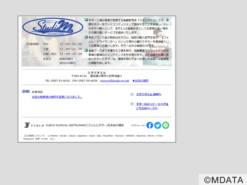 江南市にある、1996年に開業したアコースティックギター専門の楽器店。ギター職人が経営している店で、フォルヒやドライゼンター、BSG、ジレーといった海外ブランドのギターを直輸入している。人気モデルや国産ビンテージ、ルシアーギターを展示し、試奏もできる。リペアやメンテナンス、カスタマイズに対応、塗装ブースを完備した工房がある。熟練したリペアマンが、ギターをより良い状態に仕上げるためにサポートを行う。