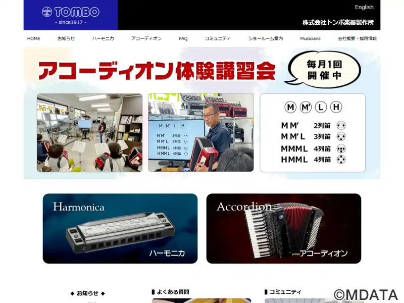 西日暮里のハーモニカとアコーディオンの専門メーカー。1902年に創業し、1917年からハーモニカの製造を開始。職人の熟練した手仕事で作られた、美しい音色で知られている。ショールームには普及品からプロ向けまで、多くのハーモニカとアコーディオンを展している。また、アクセサリーや教則本、曲集、CDなども取り揃え、アコーディオン教室や体験講習会も開催している。多くの人々がその魅力に触れる機会を提供している。