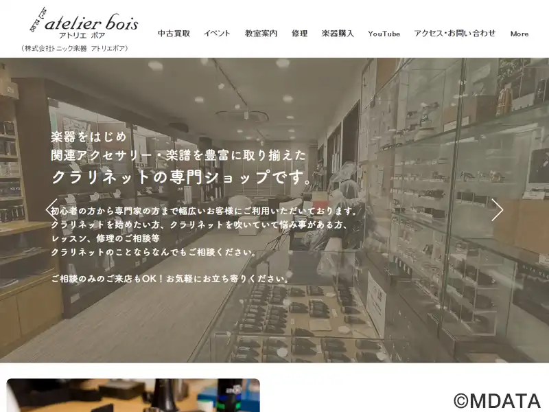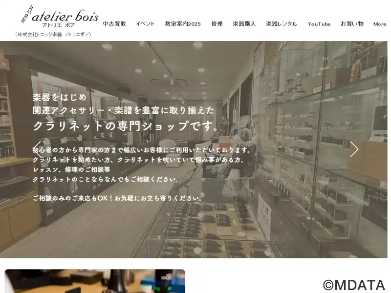 大阪・南船場にあるクラリネット専門店。1964年の創業以来、初心者からプロ奏者まで、多くのプレイヤーに信頼されている。国内外の有名クラリネットメーカーであるビュッフェ・クランポン、セルマー、ヤマハ、ジュピター、ヨーゼフ、パトリコラなどの特約店として、幅広い商品を取り扱っている。また、楽器のレンタル、レッスン、修理やメンテナンスの相談にも対応。さらに、インストアライブイベントも定期的に開催している。