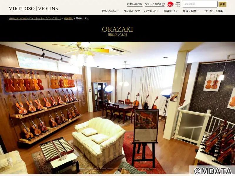 愛知県岡崎市の弦楽器専門店ヴィルトゥオーゾの本社店舗。ヨーロッパ現地買い付けや直輸入による、リーズナブルな価格の高品質弦楽器を提供する。イタリアンヴァイオリン、フレンチ弓、入門用ヴァイオリン、ヴィオラ、チェロ、ケースや弦、松脂も取り扱う。高度な知識をもつ専門コンサルタントが在籍し、修理相談や見積もりに対応。レッスン室ではヴァイオリンレッスンを開講。その他、名古屋駅前店、京都四条烏丸店を運営する。