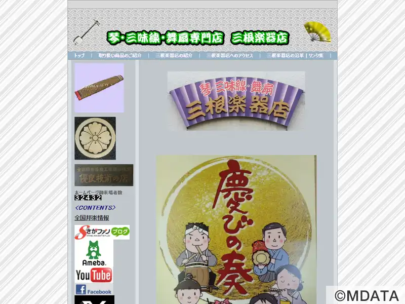 佐賀市の旧長崎街道沿い、錦通り商店街にある創業大正12年の和楽器・日本舞踊用品専門店。和楽器と付属品、邦楽楽譜の販売、修理・加工全般を中心に、日本舞踊用品、和小物、オリジナルグッズ商品も取り扱っている。また、店舗内に邦楽教室を開設しており、日本舞踊、長唄三味線、津軽三味線の稽古を行う。創業から長年にわたり地域に根付いており、和楽器・日本舞踊用品に特化した専門店として演奏家からの信頼を集める。