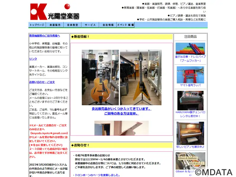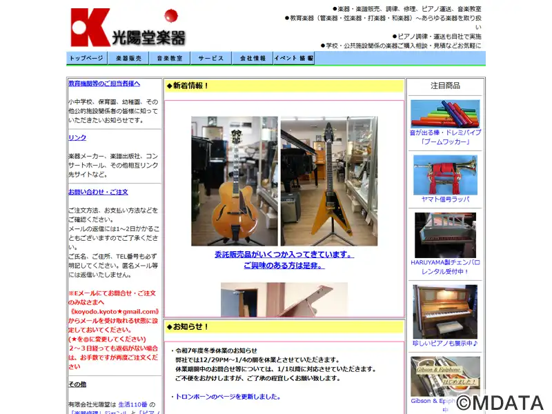 福知山市にある総合楽器店。国産・輸入ピアノ、電子オルガン、管弦打楽器、ギター、ベース、和楽器、アンティークなリードオルガンやチェンバロなどの展示販売を行う。ピアノ調律・修理・運送も自社で行い、楽器買い取りやレンタル、ギター・ベースのリペア・カスタマイズにも対応する。3階には最大60名収容のサロンホールと個人練習用のレッスン室2部屋を完備し、光陽堂音楽教室として様々なコースのレッスンも開講している。