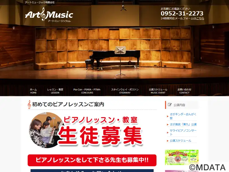 佐賀駅北口徒歩1分。スタインウェイピアノ・ボストンピアノ佐賀・長崎県正規特約店。試弾ルームにてスタインウェイ・BOSTONグランドピアノの試弾が可能。ピアノ調律メンテナンス他、音楽教室ではピアノ、声楽、ヴァイオリン、フルート、チェロ、文化琴、サキソフォン等のコースを開講。ビティナ・PIARAピアノコンクールやグレード、ピアノ講習会、コンサート企画など様々な音楽事業を手がけている。