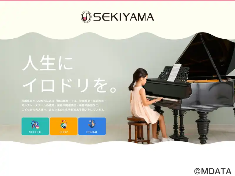 1977年に茨城県ひたちなか市で開業した関山楽器の本店。楽器関連商品や楽譜の販売、音楽教室、英語教室、そしてカルチャースクールの運営を行う。ピアノやエレクトーンはもちろん、サックス・バイオリン・ギター・ドラムなど、さまざまな楽器を展示販売。小物類やスコアも豊富に揃っている。ヤマハ音楽教室、英語教室、カルチャースクールも開講し、スタジオや練習室、ホールのレンタルも行っている。勝田駅東口から徒歩5分。