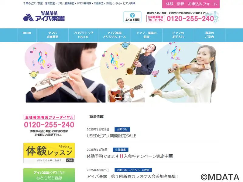 千葉市を中心に四街道市、富里市でヤマハ音楽教室・ピアノ教室・フラダンス&ウクレレ教室・各種音楽教室(幼児~大人)・楽器販売・楽器レンタル・ピアノ調律を行っています。 初心者から経験者、親子レッスン、もっと上達したい方もお気軽に。音楽で心豊かに過ごすお手伝いを私たちにお任せください。ジュニアエレクトーンフェスティバルなども開催しております。