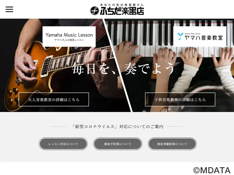 山口県岩国市に、1958年に創立された老舗楽器店。グランドピアノやアップライトピアノなどの鍵盤楽器、管弦楽器、楽譜、音楽書籍を取り扱い、ピアノ調律や楽器レンタル、ピアノ買い取りなどのサービスも提供している。音楽イベントの主催も行い、地元コミュニティの音楽文化を支えている。「ふちだ音楽センター」では、ヤマハ音楽教室の各コースや大人向けの音楽レッスンなど、幅広い年齢層を対象としたレッスンを開講している。