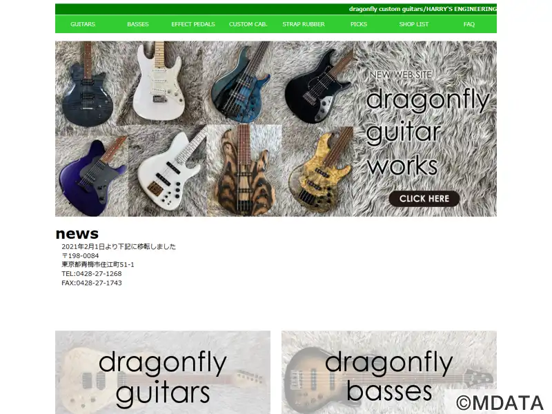 ハリーズエンジニアリングでは、プライベートブランドdragonflyのギター、ベース、オリジナルピックアップ、weedのエフェクター、ケーブル、G&H社(アメリカ)のプラグ、ストラップラバー、BWCのメタルピック、GIGバッグなど取り揃えております。試奏・オーダーの受付はスペシャルショップでご相談下さい。2021年2月より恵比寿ギャラリーから本社・工房を移転。