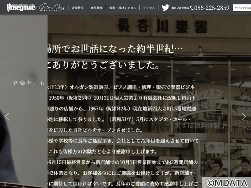 大正13年創業、1台のオルガンから出発した岡山の老舗楽器店。2022年9月15日をもって西大寺町から移転、10月1日より表町商店街にそれぞれの分野に特化した2店舗リニューアルオープン。紙屋町本店「ギターコロニー」ではギター・ベース・ドラム・キーボード、関連小物の販売、楽器修理、音楽教室を運営。コロニーオリジナル教室&ヤマハ大人の音楽教室にてギター、ドラム、ボーカル等の各種レッスンを開講。