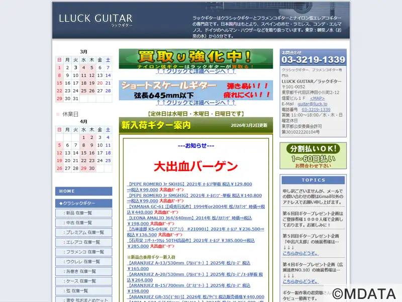 2006年5月に御茶ノ水で開店した、クラシックギターやフラメンコギター、エレガット、ウクレレなどのギター専門店。国内製作家による最新作ギターから、ヴィンテージ銘器、格安な中古ギターまで幅広く取り揃え、店内での試奏もできる。取り扱いブランドにはスペインのホセ・ラミレス&コンデ・エルマノス、フレタ、アグアド、ロマニロスや、独ヘルマン・ハウザーも取り扱っている。ナイロン弦ギターの買い取りを強化している。