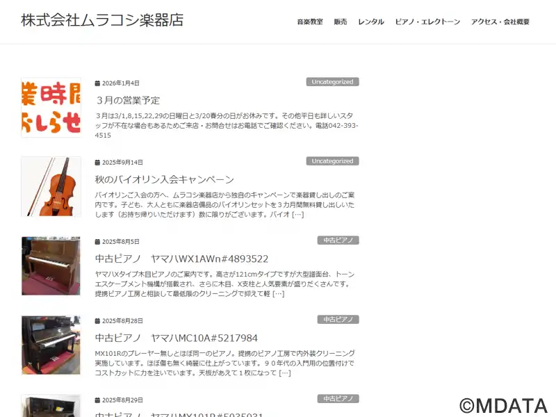 東村山市にある総合楽器店。ヤマハやローランド、コルグなどの正規取扱店として、ピアノや管弦楽器などの楽器や楽譜を販売する。また、スタジオの貸し出しや楽器のレンタル、調律・修理、買い取りなど多くのサービスを提供する。また、ヤマハ音楽教室や大人向けの音楽レッスン、オリジナルレッスンなど、初心者でもわかりやすく、丁寧に指導するコースを開講している。東村山駅徒歩7分、ピンクの建物が目印で、駐車場も20台完備。