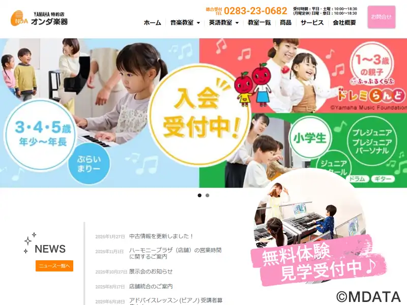 栃木県佐野市に1961年創業した楽器店。楽器や楽譜の販売、レンタル、ピアノ調律、防音室のレンタルなどを行い、栃木県を中心に初心者から経験者までを対象にした音楽教室も運営している。レッスンには、子ども向けのヤマハ音楽教室、大人も学べるヤマハミュージックレッスン、ピアノ、エレクトーン、ギター、弦楽器、管楽器などのオリジナルレッスンを開講している。歌やリズムで楽しみながら生きた英語を身につける英語教室も開講。