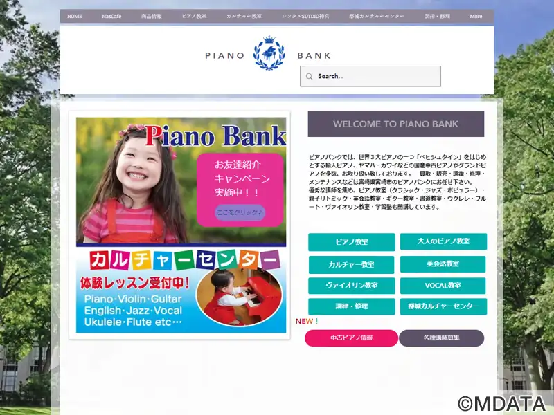 宮崎県宮崎市に2001年開業したピアノ専門店。国産中古ピアノから、輸入ピアノ、グランドピアノまで幅広く取り扱う。自社で買取、修理、調律、販売、アフターケアを一貫して行い、高品質なピアノサービスを提供。ピアノクリーニングや消音ユニット取り付けなどのサービスも展開する。2階では、クラシックやジャズのピアノ教室をはじめ、英会話、書道、ヴァイオリン、フルート、ギター、ウクレレなど多様なカルチャー教室を運営。