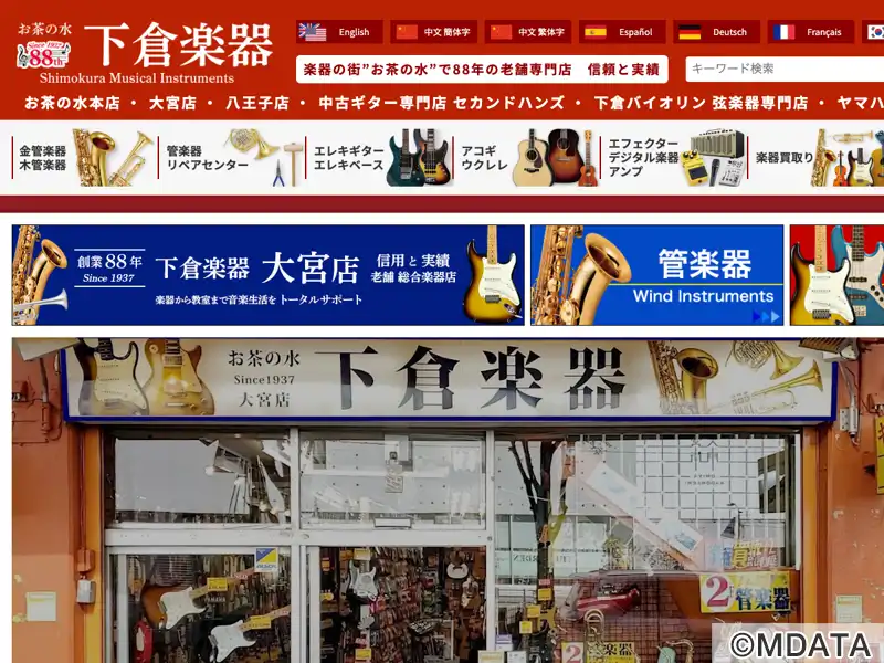 下倉楽器大宮店は、1937年創業の老舗楽器店「下倉楽器」が大宮駅東口駅前通りに1976年開店した店舗。県内で最大の展示数と在庫数を誇り、ギター、ベース、ウクレレ、管楽器、ドラム関連、バイオリンなど、エントリーモデルから一流ブランドまで多くのラインナップを提供する。アンプやエフェクター、アクセサリーも充実。特に、管楽器は常時200本以上展示しており、試奏室もあるので実際に演奏して自分の一台を選べる。