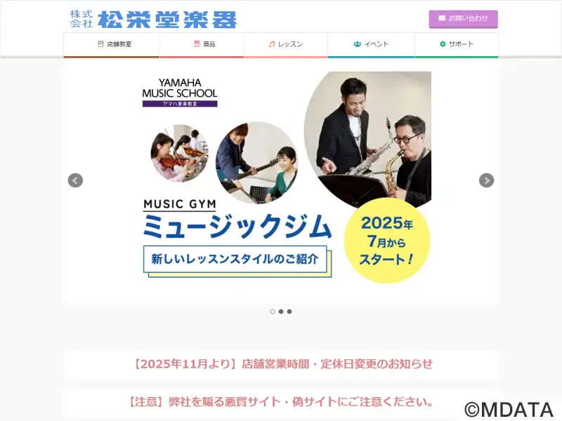 岐阜市にある創業大正7年の老舗楽器店。ピアノや電子ピアノ、エレクトーン、管楽器、弦楽器など、新品から中古まで幅広い商品を展示・販売。楽譜やクラシックCDも充実している。管楽器のリペアやメンテナンス、ピアノの調律や電子楽器の修理にも対応する。音楽教室では、ピアノから声楽まで幅広いレッスンを開講。初心者から経験者まで対応しております。また、本店5階のホールでは、気軽に楽しめるコンサートを定期開催している。