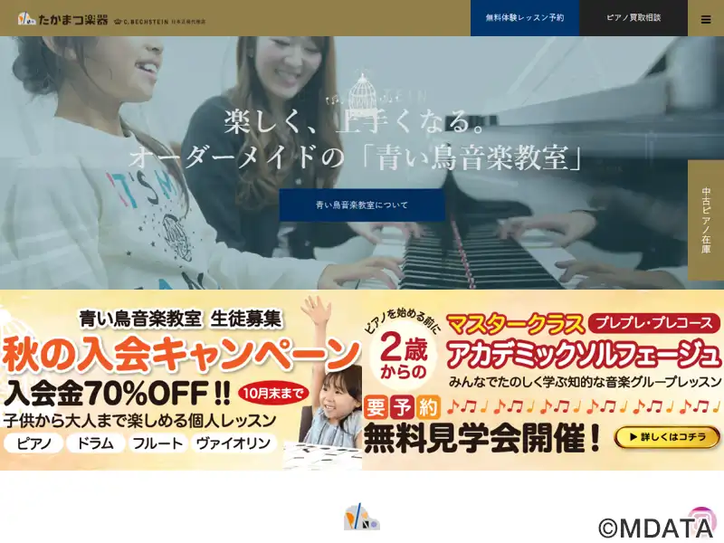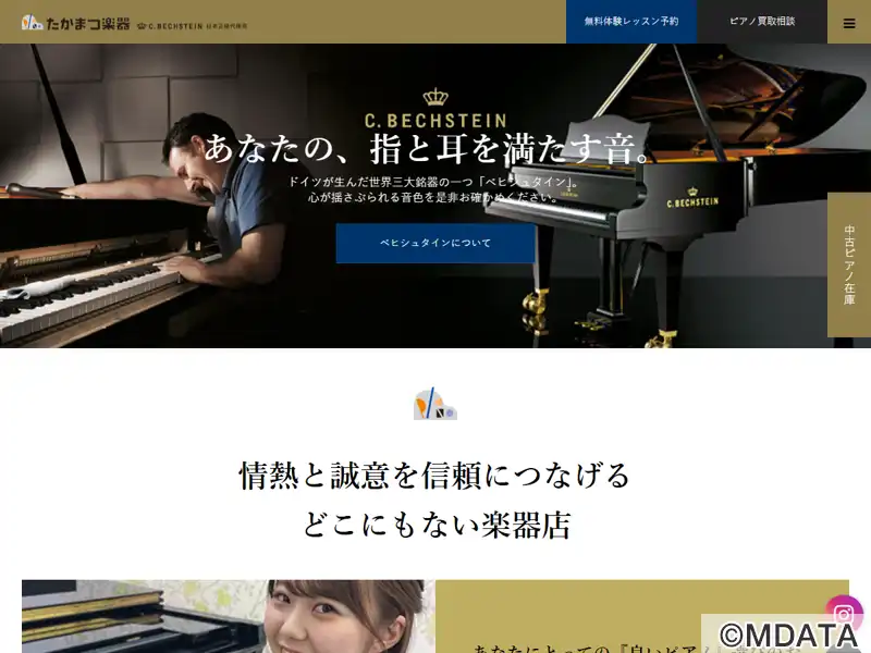 香川県高松市にある1976年創業の老舗ピアノ専門店。ピアノへの深いこだわりと豊富な専門知識を生かし、国産ピアノはもちろん、ベヒシュタインをはじめとするヨーロッパの銘器や中古ピアノまで、幅広いラインナップを揃える。充実の品揃えと、自社工房による丁寧な修理・調律などのアフターケアで、ピアノ愛好者のニーズに応えている。2階のサロン「ピアーチェ」では、演奏家による公開講座やコンサートも開催されている。